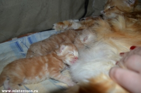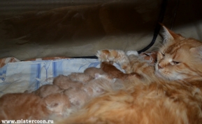 6 кунят рыжего и кремового окраса ждут вас в питомнике мейн кунов «Мистер Кун»: кошечка и 5 озорных мальчишек. Если вас интересует мейн кун рыжий, поспешите: котят огненного окраса всего два! Малыши родились купными, здоровенькими и радуют нас отменным аппетитом. Через несколько недель крохи будут готовы отправиться в ваш гостеприимный дом, а пока их задача – хорошо кушать и набираться сил.