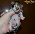 Котята-коты от данного помёта уже зарекомендовали себя как очень крупные и тяжёлые мейн куны. Вес в возрасте до года составляет 9-10кг! Вы можете посмотреть выпускников из предыдущих помётов от данной пары